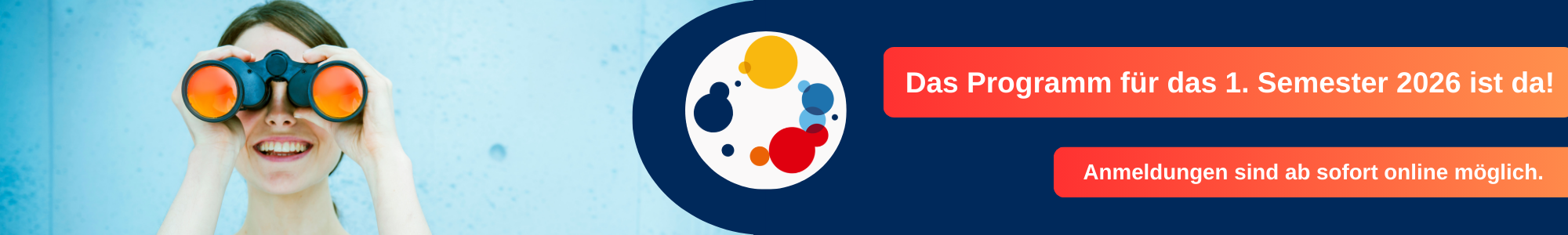 Unser neues Programm für das Frühjahr 2026 ist ab sofort buchbar - mit vielen neuen Kursen und Veranstaltungen.